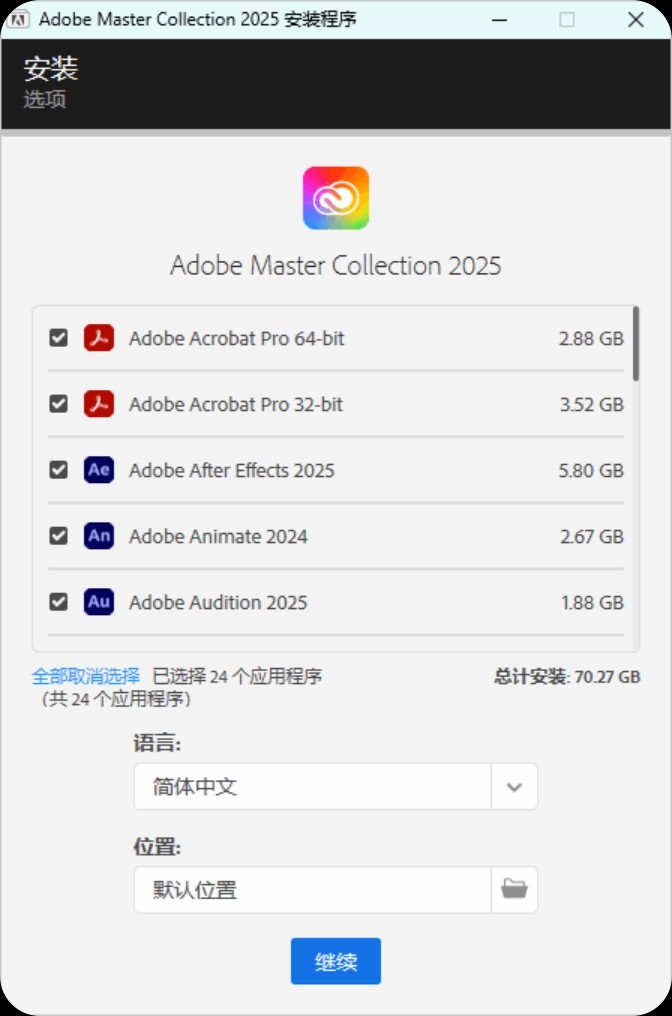 集成说明: 该合集包由 箋疏 大佬以 m0nkrus 制作的 Adobe Master Collection 2025 RUS-ENG v9 为基础,用其单行版多国语言补齐。致谢两位大佬