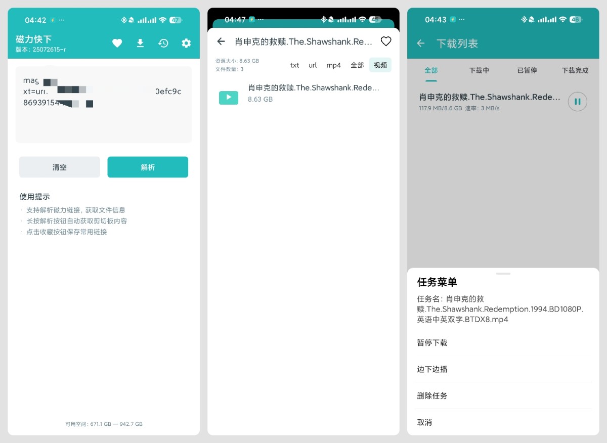 磁力快下是一款专为快速解析和下载磁力资源设计的应用工具。它支持多种下载协议,包括HTTP、FTP、BT、迅雷专用链、磁力链接和电驴等,无需依赖多个下载工具。用户只需在解析框中复制想要解析的磁力链接,即可快速开始下载过程。该应用界面清爽,全程无广告推送,确保用户享受纯粹的下载体验。此外,磁力快下突破速度限制,在网络条件允许的情况下,能以最大带宽进行下载,大幅缩短文件获取时间。无需登录注册,即装即用,非常适合需要高效下载资源的用户。
