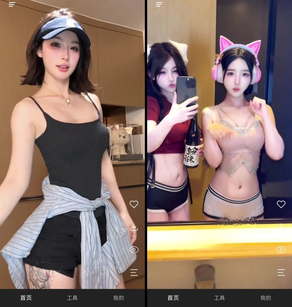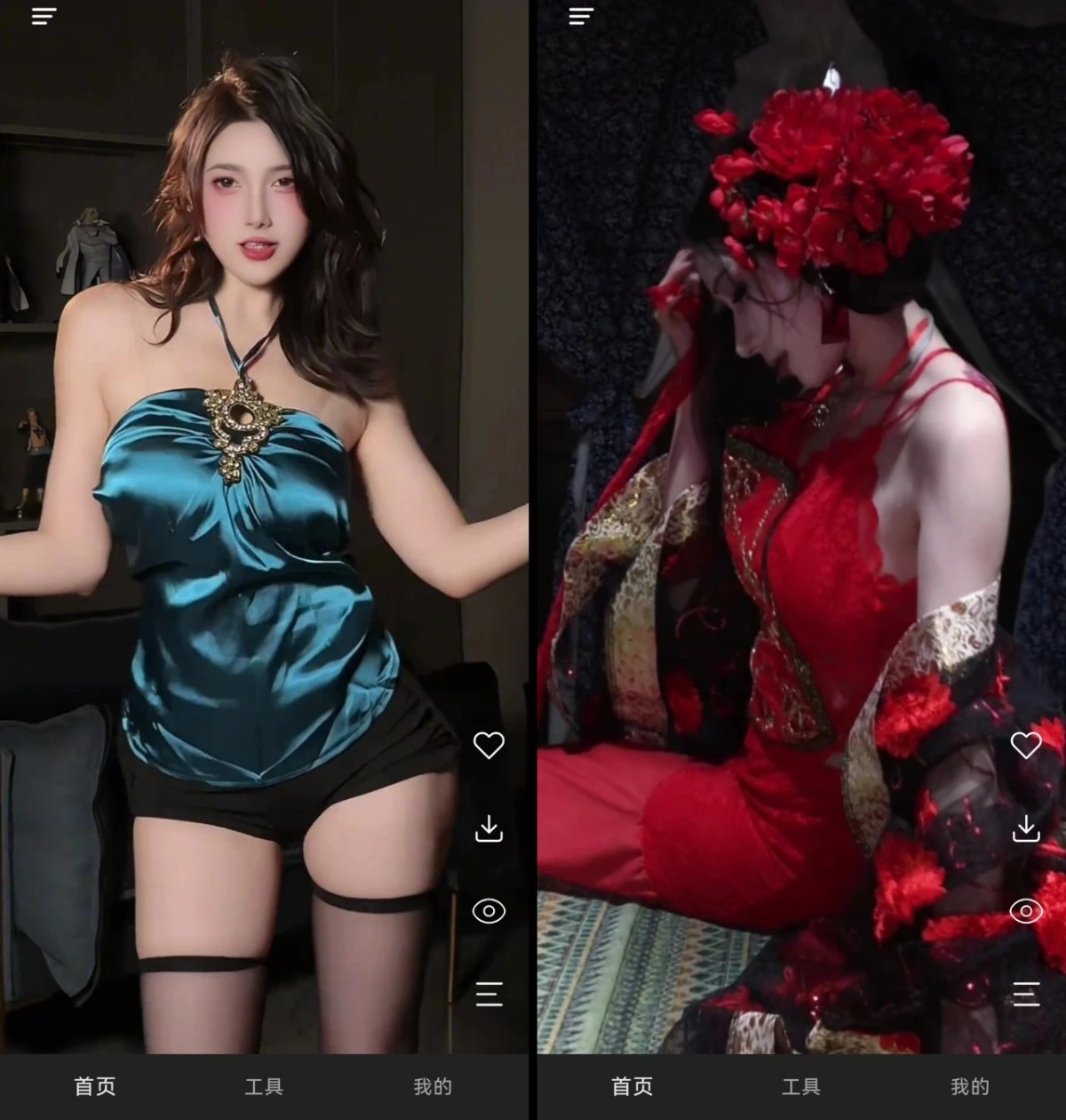 虾看,这是一款看小姐姐的软件。默认推荐、严选、颜值、COS、少萝、爱看(有惊喜),一共 6 个版块可供选择。加载流畅,整体使用还是非常不错滴~ 和某音用起来差不多,区别就是刷到的全是小姐姐视频,也只是收藏、无水印下载等功能!除此之外,内置的小工具,图集解析、视频解析、网盘直链获取,也很实用。