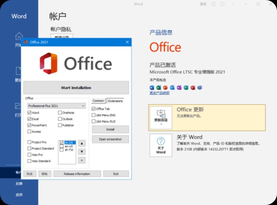 内置 Ratiborus 的 AAct 激活工具 以及 Microsoft 激活脚本(MAS),支持 KMS 模拟激活与在线激活双模式,确保 Office 组件激活成功,显示为“已激活”状态,避免频繁提示登录账户或试用到期的问题。