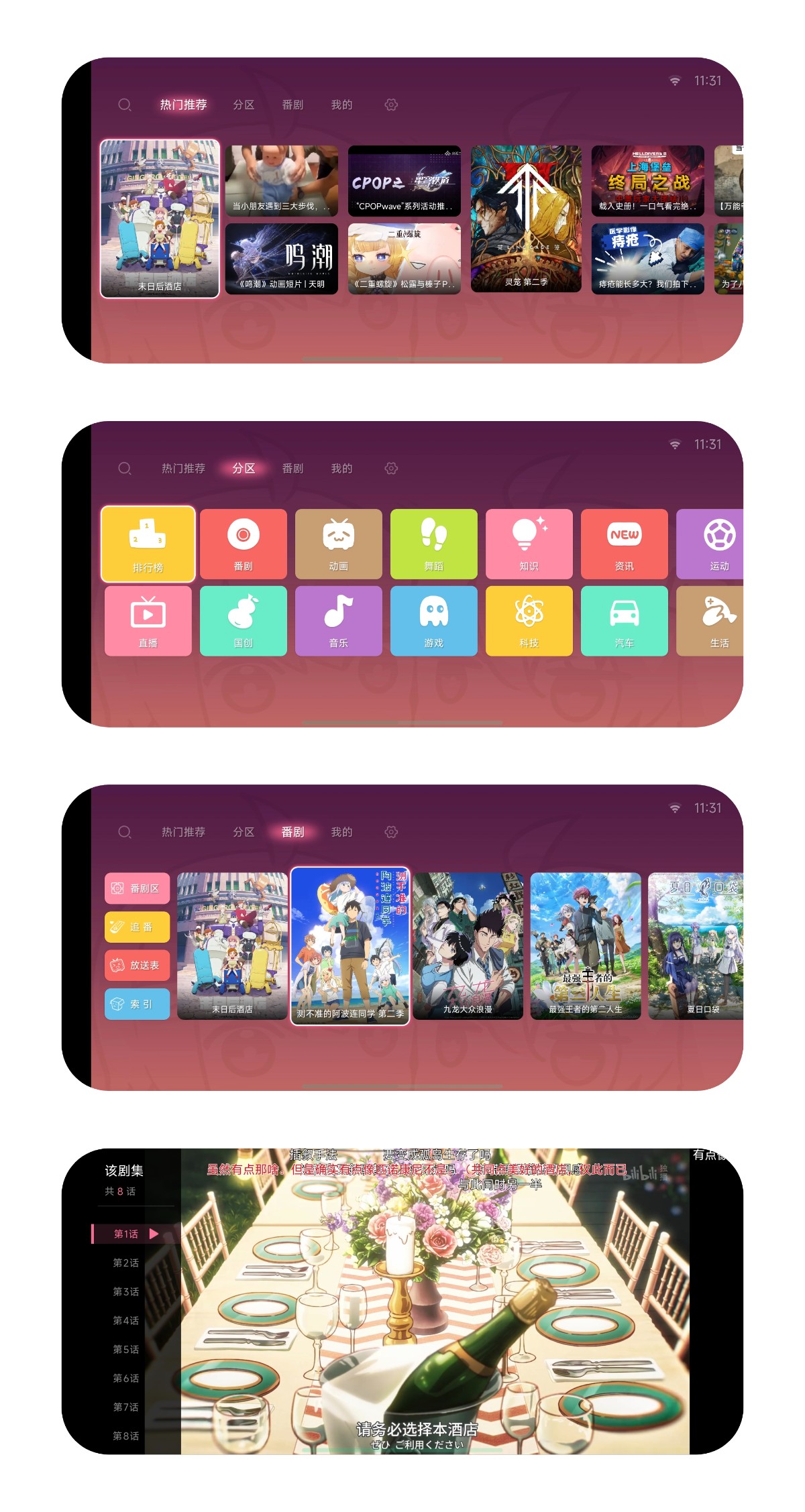 哔哩哔哩TV版(bilibilitv)是一款专门为电视用户设计的应用程序,旨在让用户能够在大屏幕上享受来自哔哩哔哩的所有精彩内容。该应用继承了手机版哔哩哔哩的主要功能,包括热门推荐、番剧浏览、搜索以及动态视频支持。v11测试版在此基础上进一步优化了用户体验,增加了诸如“我的”标签页排序、自定义CDN选择、个性化设置等功能。此外,针对播放器进行了多次改进,提升了视频播放的质量和稳定性,例如增加了长按记忆播放模式调节状态、直播画质切换等功能。对于追求极致观看体验的用户来说,该应用提供了强大的定制化选项,确保每位用户都能找到最适合自己的观看方式。