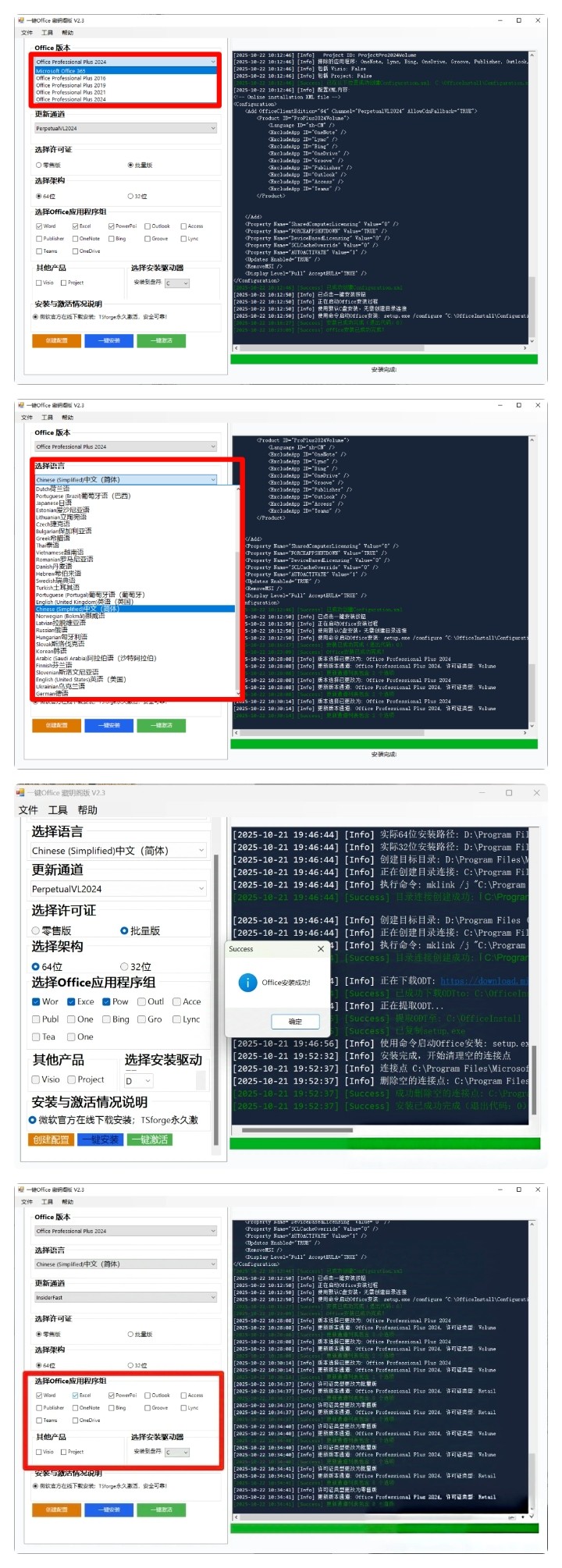 这款一键Office安装激活工具是一款专为需要快速安装和激活Microsoft Office的用户设计的强大工具。它体积小巧,不到1MB,无需安装即可使用。该工具支持从Office 2016到2024的所有版本,并允许用户根据需求选择不同的语言和组件进行安装,包括Word、Excel、PowerPoint、Access等核心组件以及额外的Vision和Project选项。通过简单的界面操作,用户可以轻松完成Office的安装与激活流程。