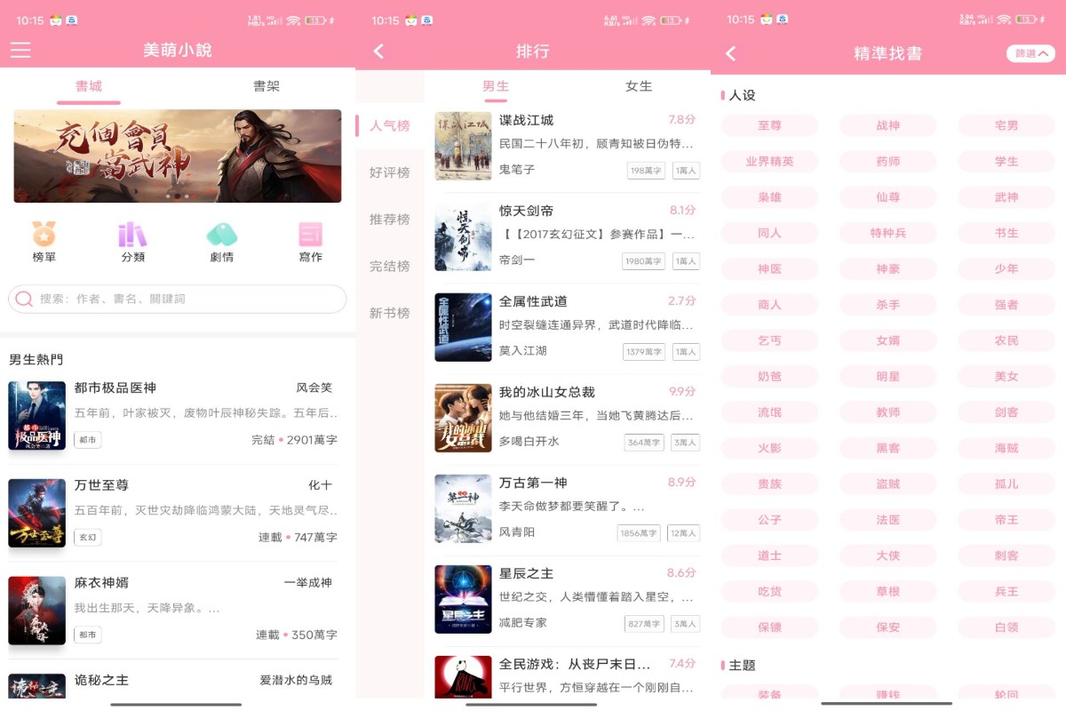 【软件名称】:美萌小说