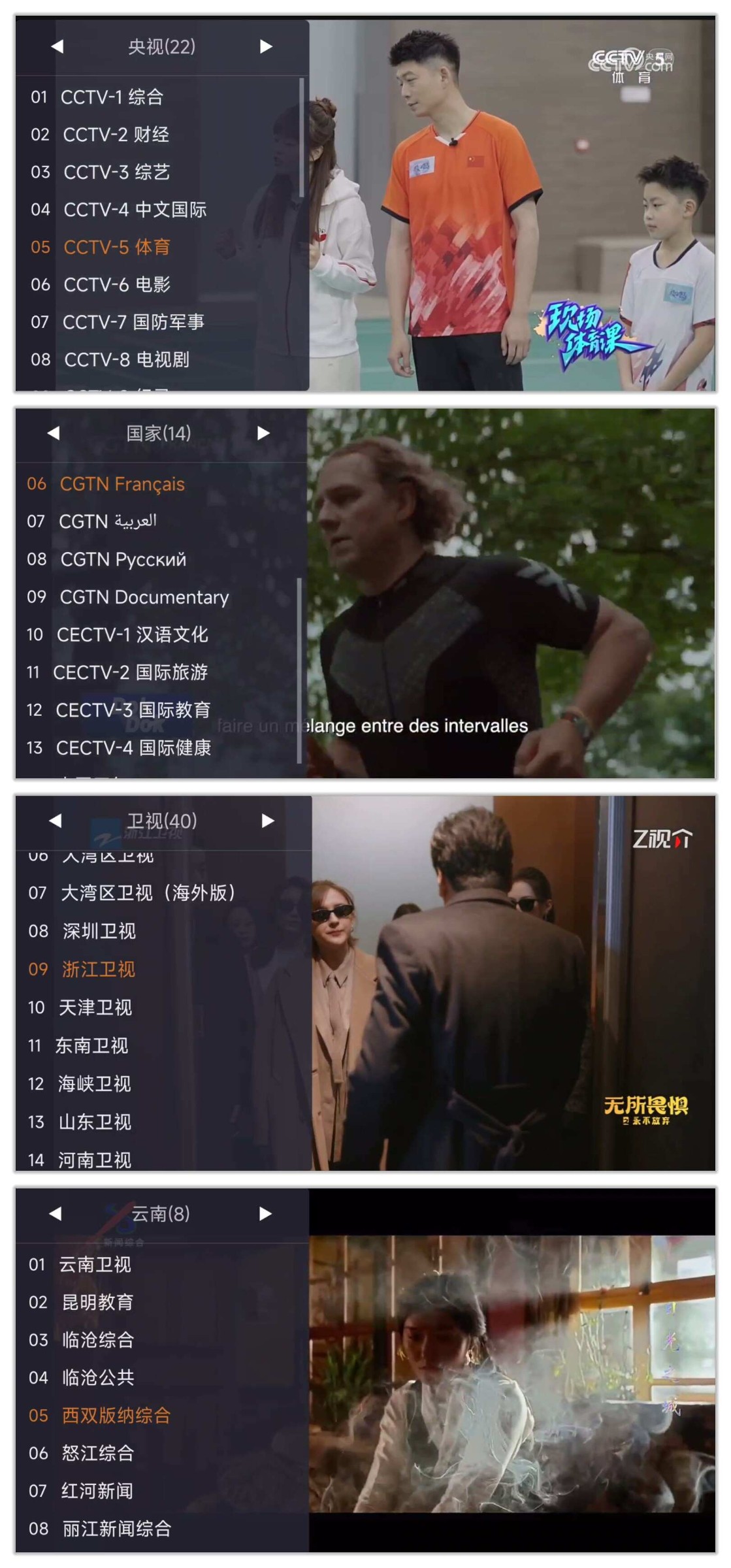 - 频道齐全:涵盖央视、卫视、地方台等多种频道。
