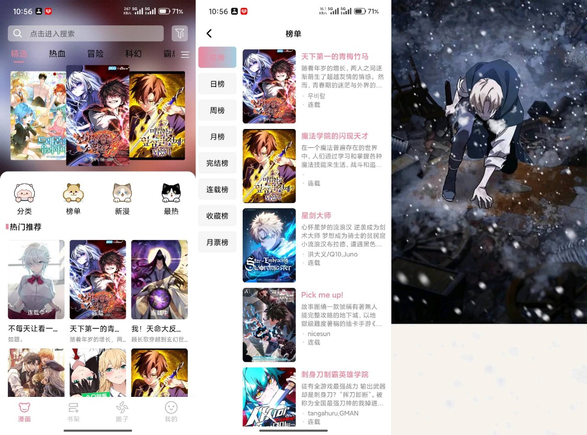 【软件介绍】:一款专为漫迷量身打造的漫画阅读平台,聚合了多个平台的漫画资源,可以根据首页推荐或分类订阅喜欢的漫画,让你不会错过任何精彩的章节,享受漫画的乐趣。
