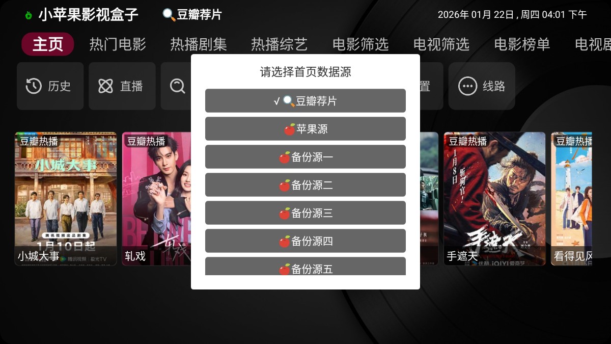 支持 TVBox 源接口配置,轻松导入自定义资源实时电视直播与 IPTV 播放,覆盖国内外主流频道影视点播聚合,快速搜索热门电影、电视剧、动漫4K 蓝光高清播放,支持 DLNA 投屏及大屏操控无广告、纯净播放,极速秒开不卡顿完美适配遥控器操作,方便家庭娱乐