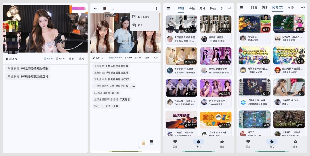 纯粹直播是一款可以观看斗鱼、B站、虎牙和抖音等六大直播平台的聚合类直播软件。软件非常简洁纯粹,除了B站需要登录,其他直播平台都可以无需登录观看4K超清画质的直播,更可以跨平台关注你喜欢的主播,免去大家下载多个app的麻烦。而且这款软件适配手机、电视、电脑,基本囊括了大家使用的设备,喜欢看网络直播的非常推荐!直接安装即可使用。