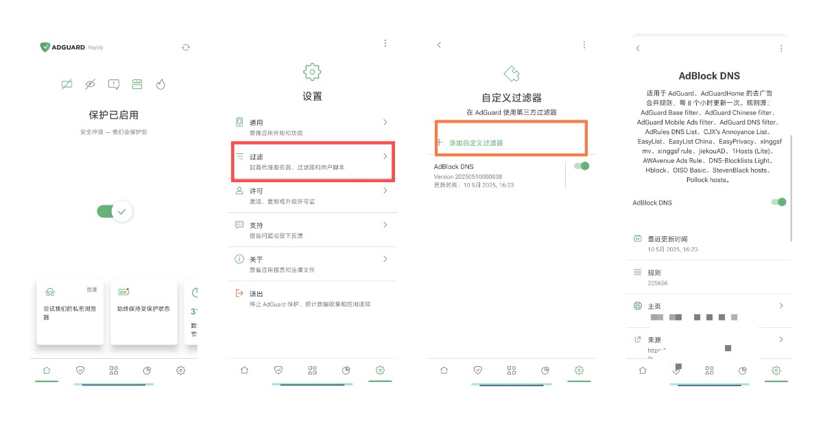 AdGuard是一款极为强大的广告拦截神器,主要作用是为用户营造无广告的浏览环境。它不但能够有效阻拦网页和应用内的广告,还解锁了专业版许可证,让用户得以享有更多高级功能与服务。借助推荐规则,可进一步强化广告过滤效果,保障用户拥有更纯净的上网体验。导入规则操作:进入“防护>广告拦截>用户规则>右上角菜单>导入”。可导入以下规则增强广告拦截效果:- 番茄规则:https://gh-proxy.com/raw.githubusercontent.com/changzhaoCZ/fqnovel-adrules/refs/heads/main/fqnovel-fxxk_ads- 番茄小说喜马拉雅七猫小说等拦截规则:https://raw.gitmirror.com/TTDNS/Cat/main/TT%E6%8B%92%E7%BB%9D%E5%88%97%E8%A1%A8%E6%B8%85%E5%8D%95%20(%E6%9B%B4%E6%96%B0%E4%B8%AD).txt- 规则2:https://ghproxy.net/https://raw.githubusercontent.com/2771936993/HG/main/hg1.txt- 规则3:https://ghproxy.net/https://raw.githubusercontent.com/damengzhu/banad/main/jiekouAD.txt- 新规则4:https://ghfast.top/https://raw.githubusercontent.com/afwfv/DD-AD/main/rule/DD-AD.txt- 新规则5:https://ghproxy.net/https://raw.githubusercontent.com/damengzhu/banad/main/jiekouAD.txt通过这些规则,用户可以进一步提升广告拦截的效果,享受更加干净的网络环境。直接安装即可使用,按照说明导入规则以增强功能。
