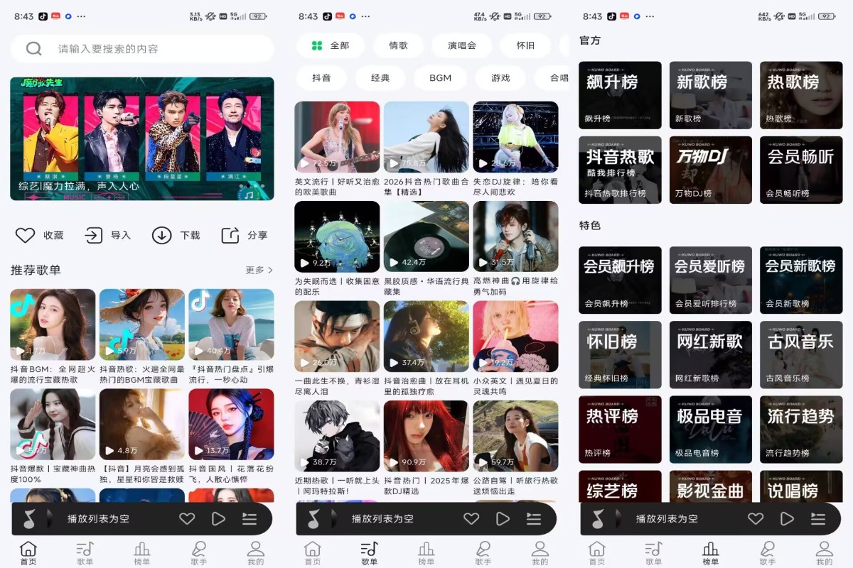 【软件介绍】:一款手机音乐App,律动心灵,发现好歌!致力于为用户提供高品质的音乐享受,拥有庞大的正版音乐库,涵盖流行、古典、独立等多种风格。界面设计简洁现代,操作流畅,并提供智能推荐,让你轻松探索音乐的无限可能。(解锁VIP功能)