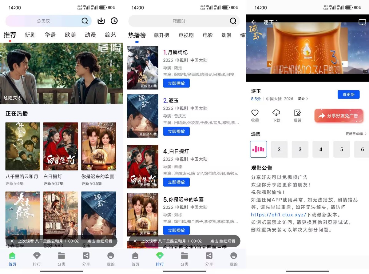 【软件介绍】:一款体验优先的追剧工具,整合多题材影视资源,支持稳定播放与进度续看,分类清晰查找方便,全程无广告,观影过程更加顺滑尽兴。