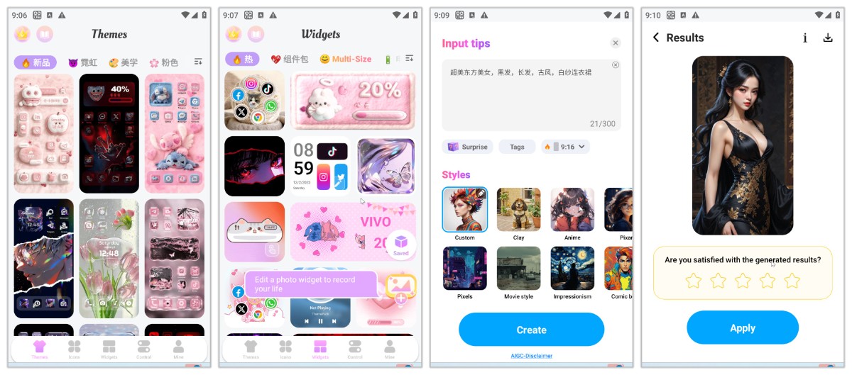 Themepack是一款聚焦于个性化手机界面打造的应用程序,着重通过对图标和小部件的定制来优化用户手机使用体验。它具备丰富功能,提供众多预设小部件与动态壁纸,同时赋予用户自由设计和调整这些元素的权利,满足个人喜好与需求。具体功能包括:- 拥有可定制的小部件,用户能够自由选择并设计,如调整尺寸、颜色、字体和布局;- 提供多样化的小部件类型,涵盖时间、天气等小型便捷获取信息的小部件;- 具备动态视觉效果,通过动态壁纸增强手机视觉体验;- 支持个人图片集成,可将个人照片用作壁纸并进行美化处理;- 允许DIY图标,从形状、颜色到表情符号每个细节皆能自定义;- 提供广泛的风格选项,方便用户更改手机主屏幕图标外观;- 还支持自定义图标命名,进一步提升个性化程度。此外,内置无限AI生图功能(介绍中未详细阐述此功能使用方式)。无论是日常使用还是特定场合,Themepack都能为用户提供强大的支持和个性化的解决方案。直接安装即可使用,无需复杂的设置过程。使用说明:直接安装使用即可。
