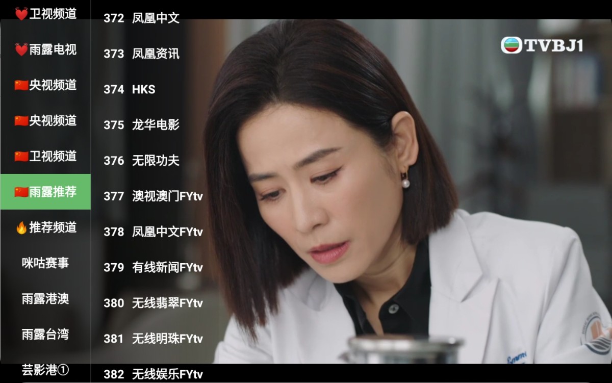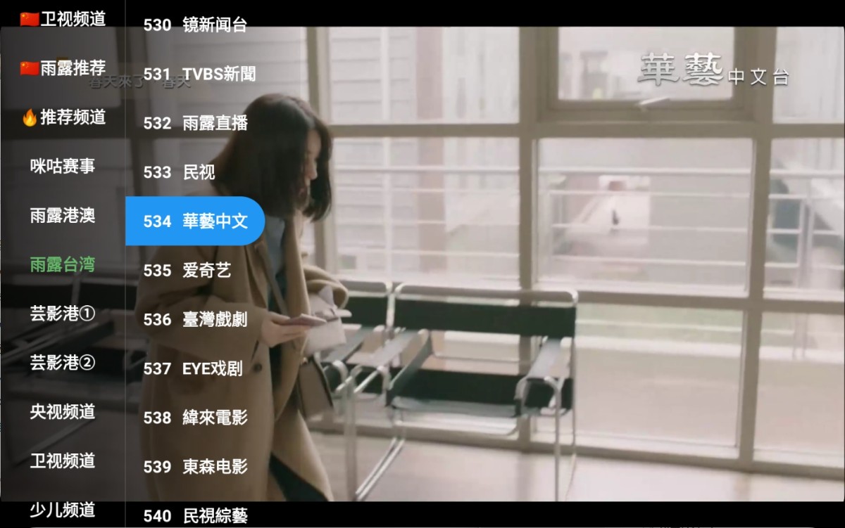 雨露电视是一款主打港澳台频道聚合的电视直播应用,覆盖台湾TVBS、非凡、民视、华视以及香港各类新闻综艺频道,支持多线路备份(如芸影港①②③)。播放器功能专业,支持EXO播放器内核、硬解软解切换、外挂字幕(.txt格式)、多音轨选择、画面反转等高级功能。还支持咪咕赛事、电影频道等大陆内容。
